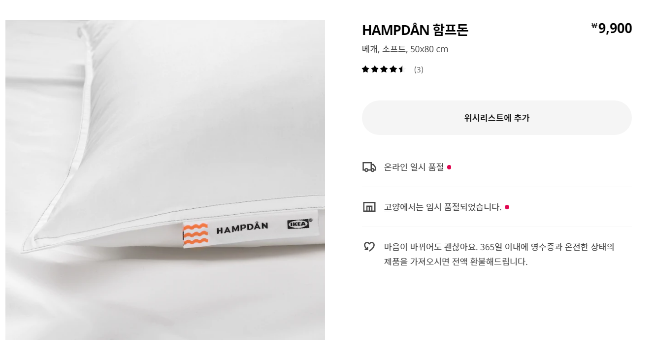 온라인 사이트에서는 종종 품절되어있는것을 확인할 수 있습니다. 만원대의 베개 중에서 이 정도 만족감을 주는 베개는 적으니깐요. 비싼 베개는 쓰고 싶지 않지만, 목 질환이 있거나 편안한 숙면을 위해서 투자하고 싶은 대학생들과, 사회초년생들에게 추천합니다. 가끔 이케아에 감사함을 느낄 때는 이런 순간인 것 같습니다. 이 가격에 이런 품질을 제공해줄 때, 물론 나중에 이케아를 자주 가다 보면 이런 제품이 미끼상품이라는 것을 알게 되지만, 어찌 됐든 이런 제품이 있다는 것은 감사할 수 있죠.